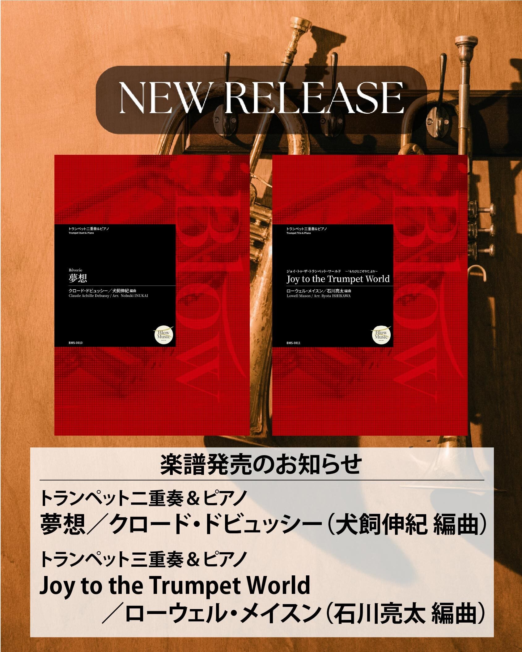 トランペットアンサンブルとピアノのためにアレンジされた楽譜を2冊発売いたしました。